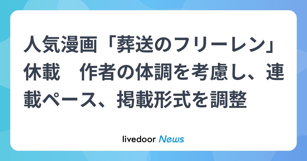 人気漫画の「葬送のフリーレン」(小学館)がしばらくの間、休載することが発表された。