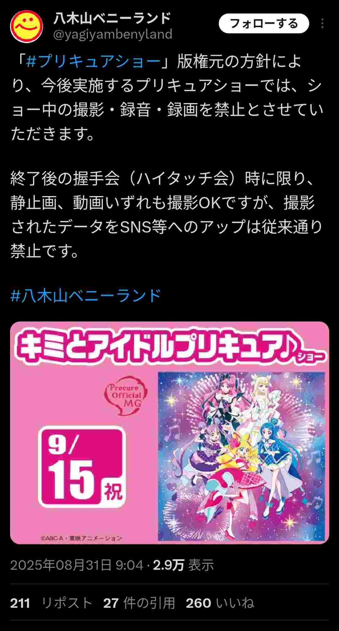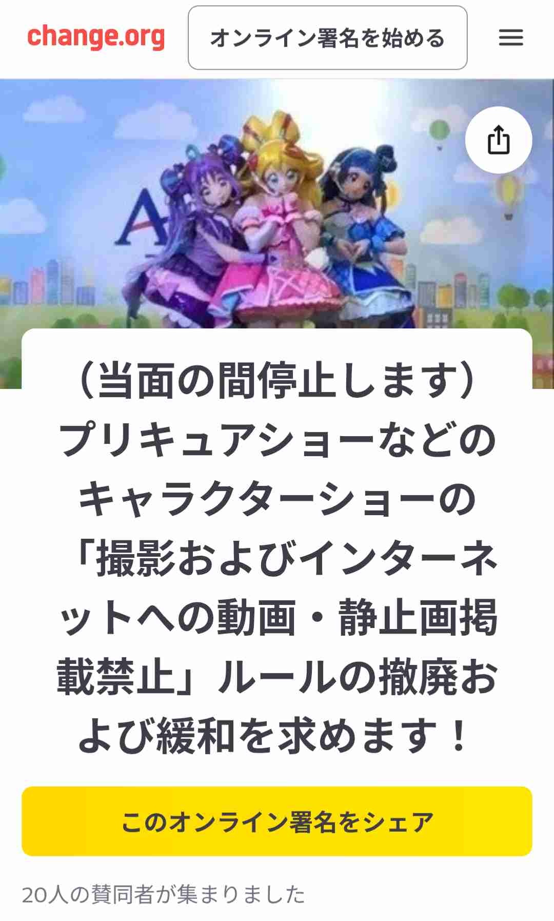プリキュアショーが大人オタク締め出しのために撮影禁止に→オタクブチ切れで署名運動開始