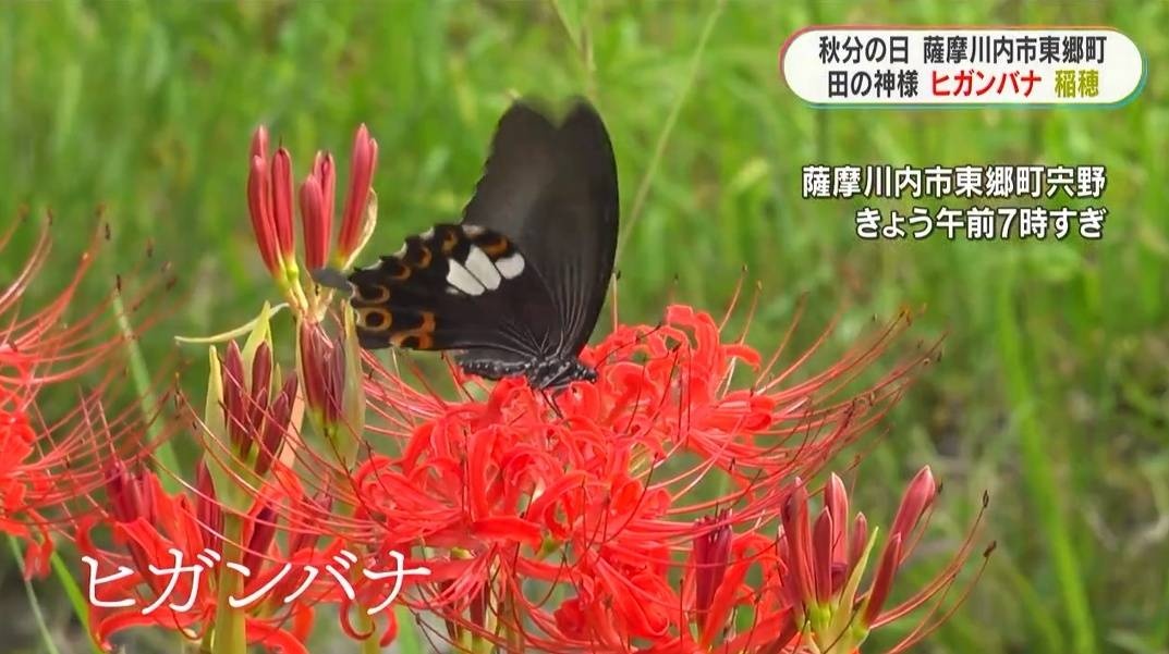 秋分の日 真っ赤なヒガンバナ×黄金色の稲穂 薩摩川内市の秋の景色