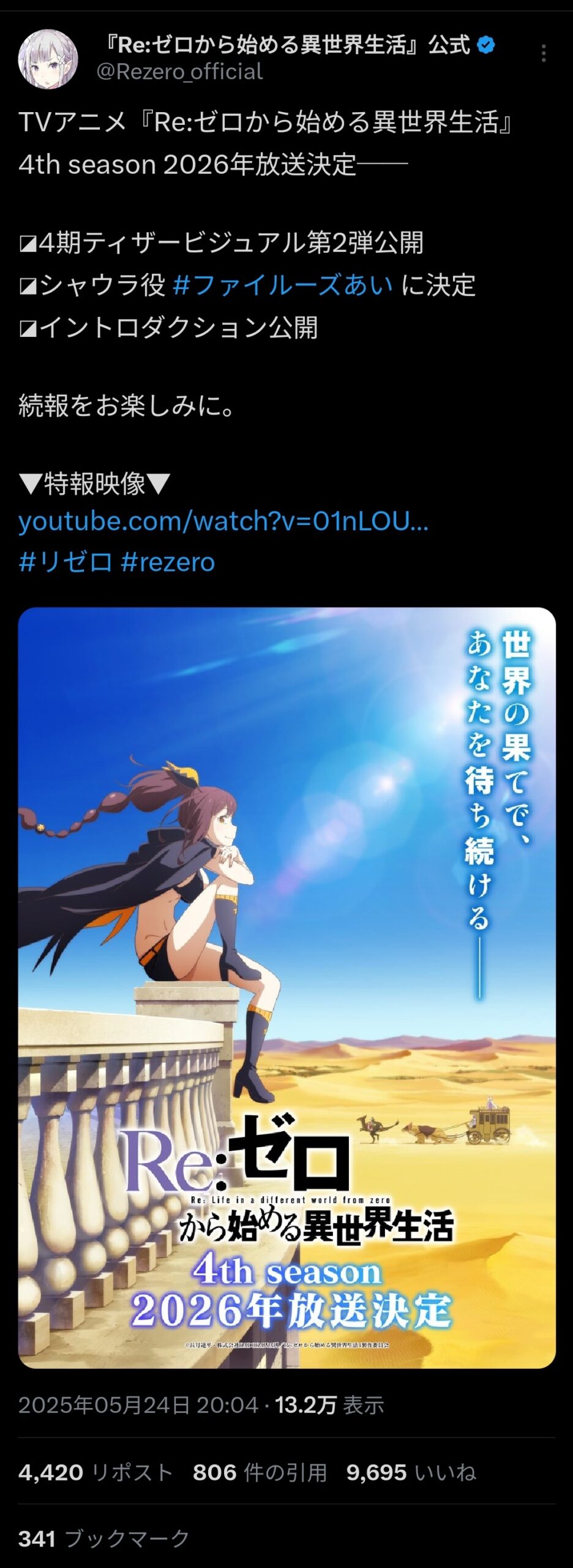 リゼロ4期、決定wwwwwwwwwwwwwwwwwwwwwwwwwwwwwwwwwwwwwwww