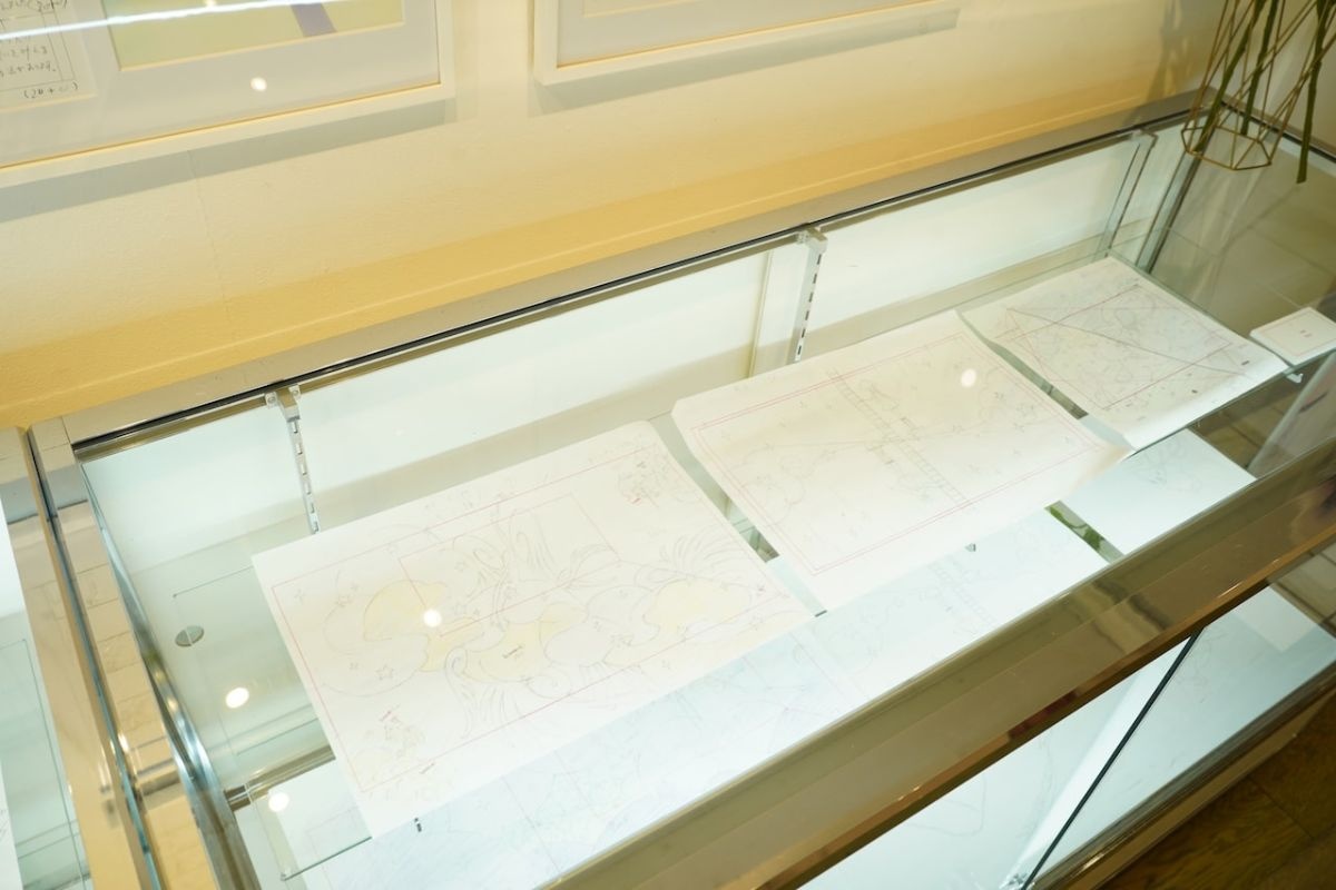 「ユリ熊嵐展-10th anniversary-」にはオープニング映像の原画や各話の絵コンテ、作中に登場する絵本「月の娘と森の娘」の原画、パッケージにも収録されていないパイロットフィルムなど、貴重な制作資料が並ぶ。さらにアニメ制作前に幾原監督が用意したという企画書もお披露目。企画書のストーリーや設定は完成したアニメと異なる部分も多く、ファン必見の内容になっている。原画は前半と後半で一部が入れ替えられるほか、会場で販売される「日替わりアクリルフィギュア」に合わせた日替わりのキャラクター設定展示も。フォトスポットとして銀子、紅羽、るるの等身大パネルも設けられている。