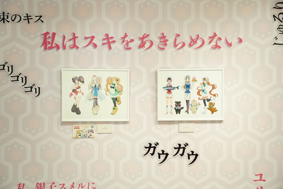 会場にも「ゴリゴリゴリ」「ガウガウ」といった擬音語や「あなたのスキは本物?」「るる、かしこい!」などの印象的なセリフが展示されているが、「『私はスキをあきらめない』という言葉は自分の中にもすごく残っています」と幾原監督。「かわいいルックスだけど、内容はちょっとハードな作品。その中で反語的に『私はスキをあきらめない』という言葉がいいような気がしたんですよね」と振り返る。また「クマの仕草や佇まいはけっこう意識して作りました」と幾原監督も言うように、さまざまなクマのキャラクターも「ユリ熊嵐」の大きな魅力の1つ。明日からの展示開催に向け、最後に幾原監督は「ぜひいろんなクマたちに会ってあげてほしいです」とファンにメッセージを送った。