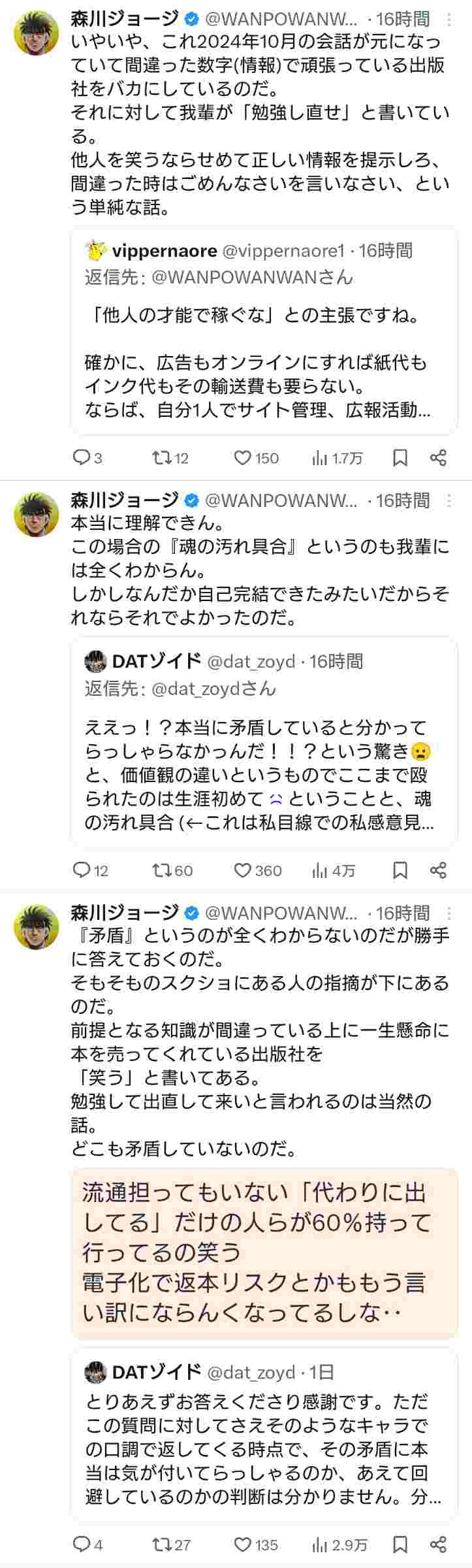 森川ジョージって定期的にSNSで暴れてる印象しかないわ