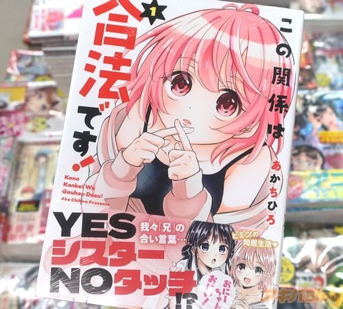 今回発売になった「この関係は合法です!」1巻【AA】には第1話~第6話を収録し、裏表紙は『妹だけど妹じゃない!?秘密の同居ライフ始まる!』、『Wで可愛い妹に、シスコンは超加速!』で、オビ謳い文句は『我々「兄」の合い言葉…YESシスターNOタッチ!?』、『ヒミツの同居生活?』になってた。