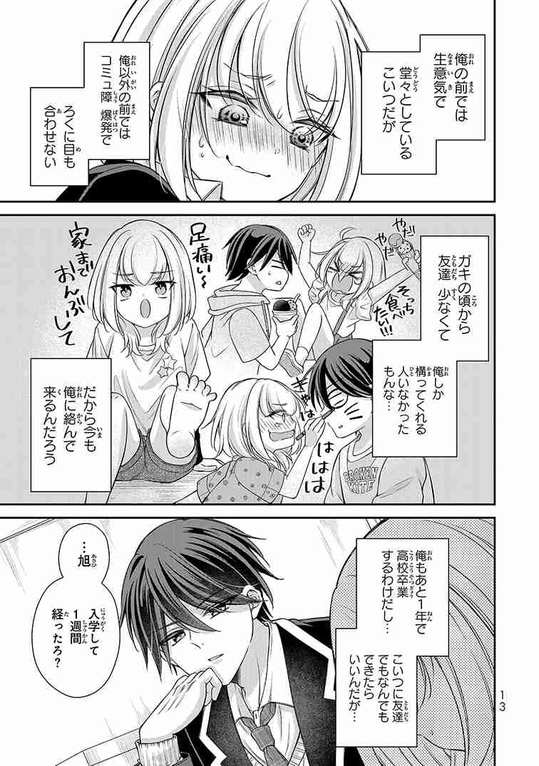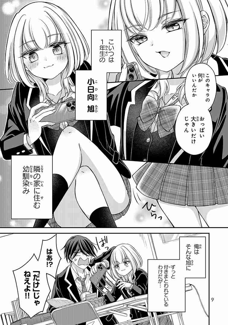 オタクライフを満喫する高校3年生・影山亮は、同じ高校に通う2つ下のナマイキな幼なじみ・小日向旭に振り回される日々を送っている。亮のことを煽って楽しんでいる旭だが、人見知りのため亮以外の相手にはコミュ障を発揮。そんな旭と亮のやり取りが描かれる。同作はマガジンポケットで連載中。