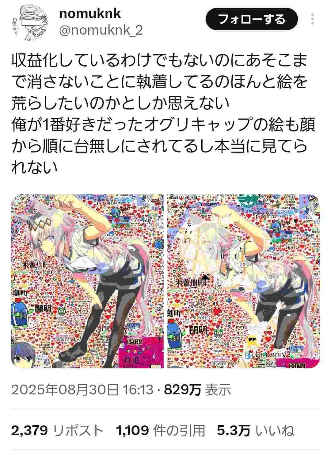 絵の紹介してたアカウントもぶっ叩かれてたな