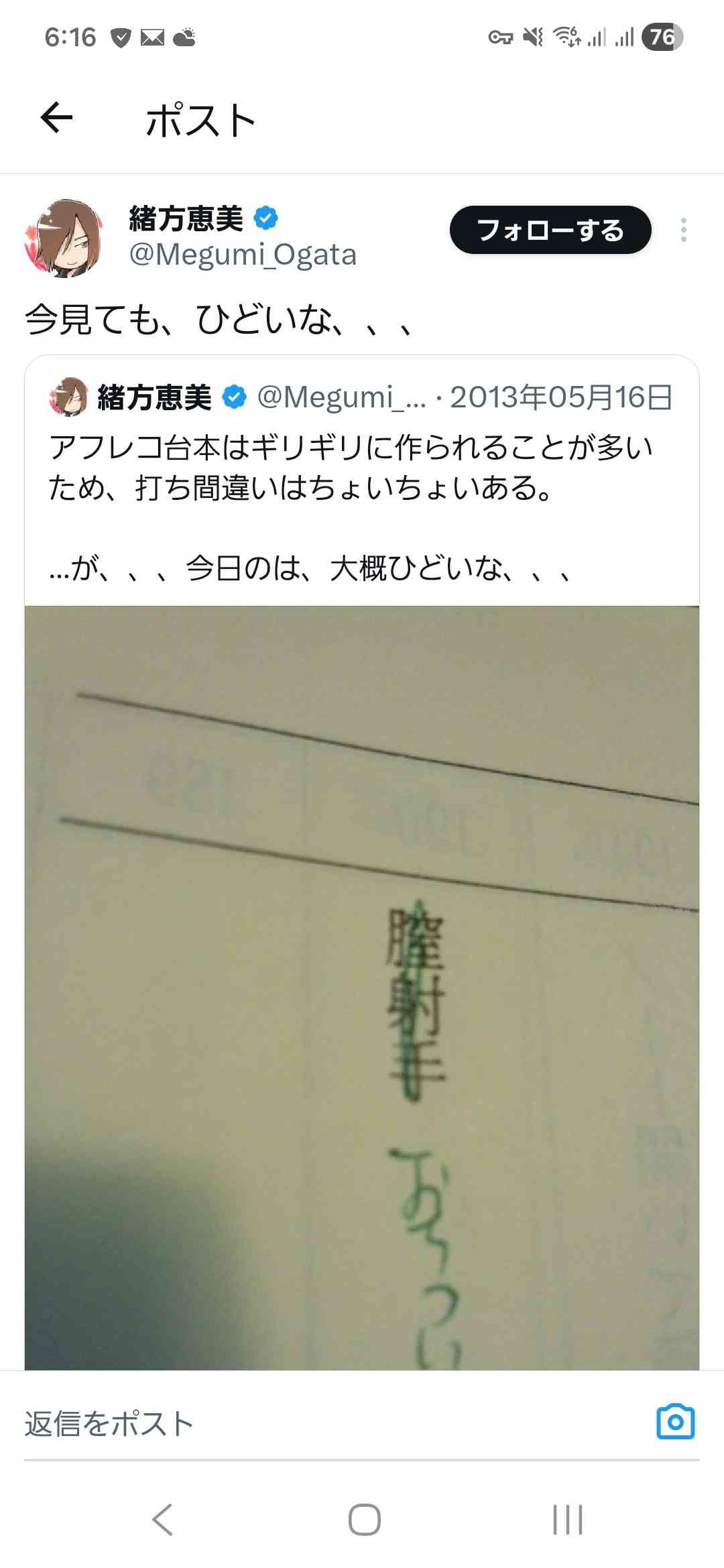 まあ実際緒方恵美に中出しした奴は存在するんだが