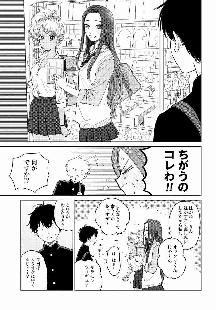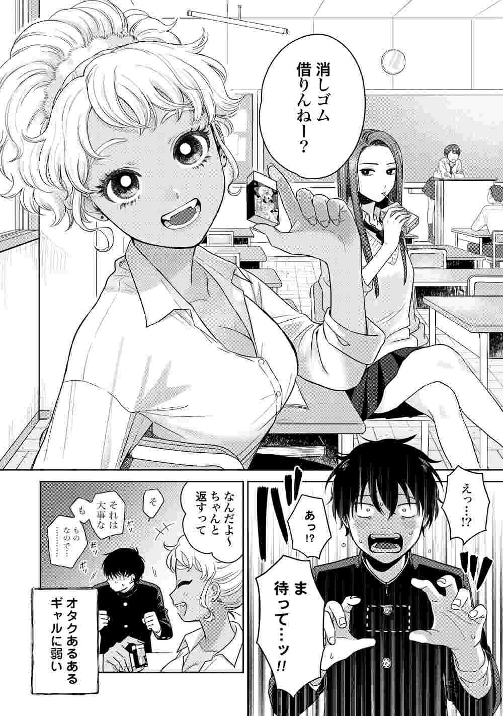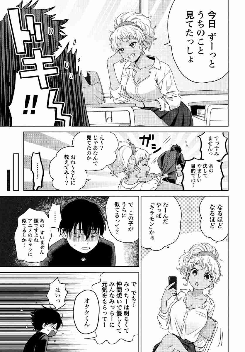 隠れオタの白ギャルとオタ否定しない黒ギャル、2人にオタク男が挟まれる新刊1巻