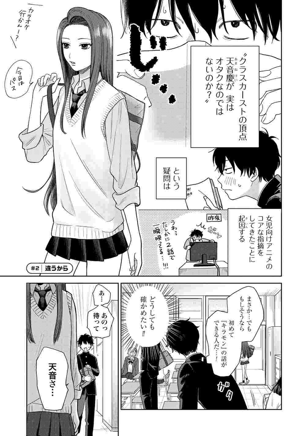 「オタクに優しいギャルはいない!?」は、女児向けアニメ「キラモン」が大好きなオタクの高校生男子・瀬尾卓也とクラスメイトの白ギャル・天音慶、黒ギャル・伊地知琴子の関係を描くラブコメ作品。「キラモン」の話題になると妙に食いついてくることから、天音さんは隠れオタクなのではと瀬尾は同好の士の匂いを嗅ぎつける。オタクに偏見のない伊地知も、2人が好きなアニメとして「キラモン」に興味を持ち、徐々に3人の距離が近づいていく。同作は月刊コミックゼノン(コアミックス)で連載中。