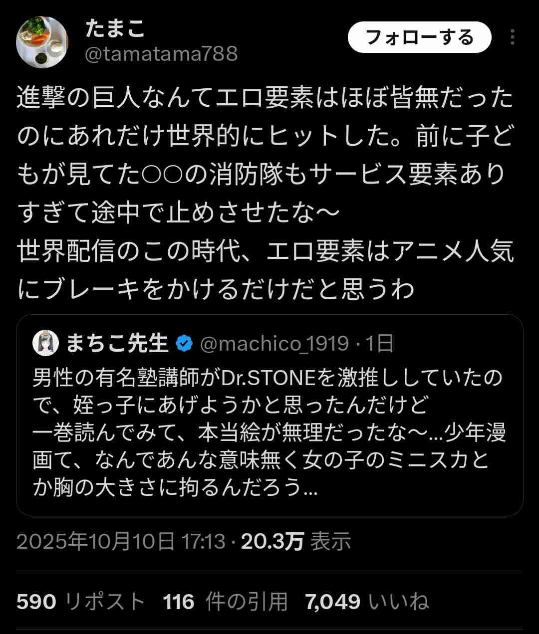 少年漫画は少年の読み物なんだからってのは本来正論だったけど出版社側が明らかに女にターゲット向けてマネタイズしてるからこういう声も無視できなくなってる