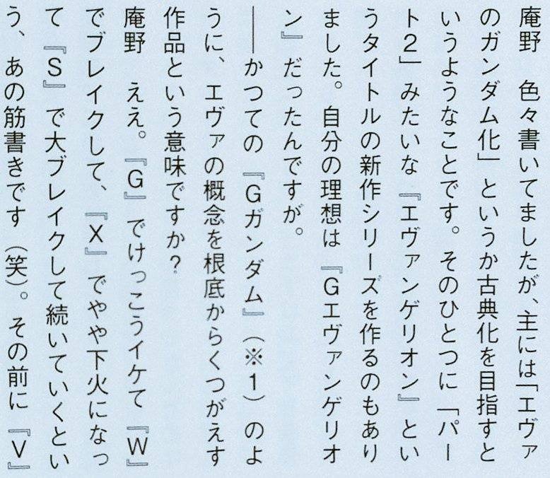 庵野秀明さん「エヴァンゲリオンでGガンダムをやりたい」
