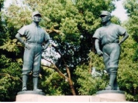 高松市中心部にある市中央公園。約3・5ヘクタールの園内には、市出身の文豪・菊池寛や読売巨人軍の名監督・水原茂氏ら計31体の像などが設置されている。その中には、少女2人が向かい合って立つ裸像もある。