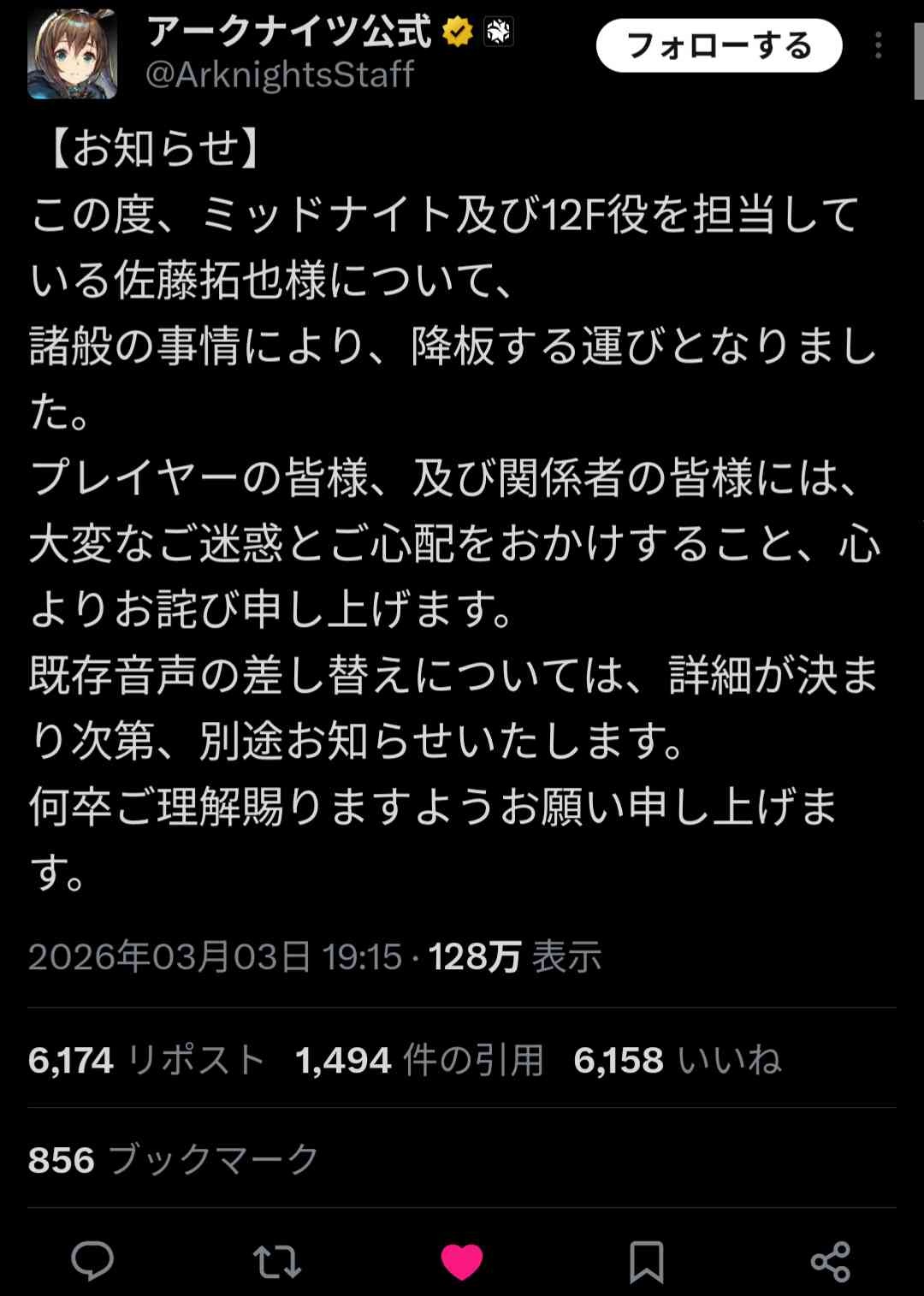 日本人人気声優、中国産覇権ソシャゲ『アークナイツ』緊急降板