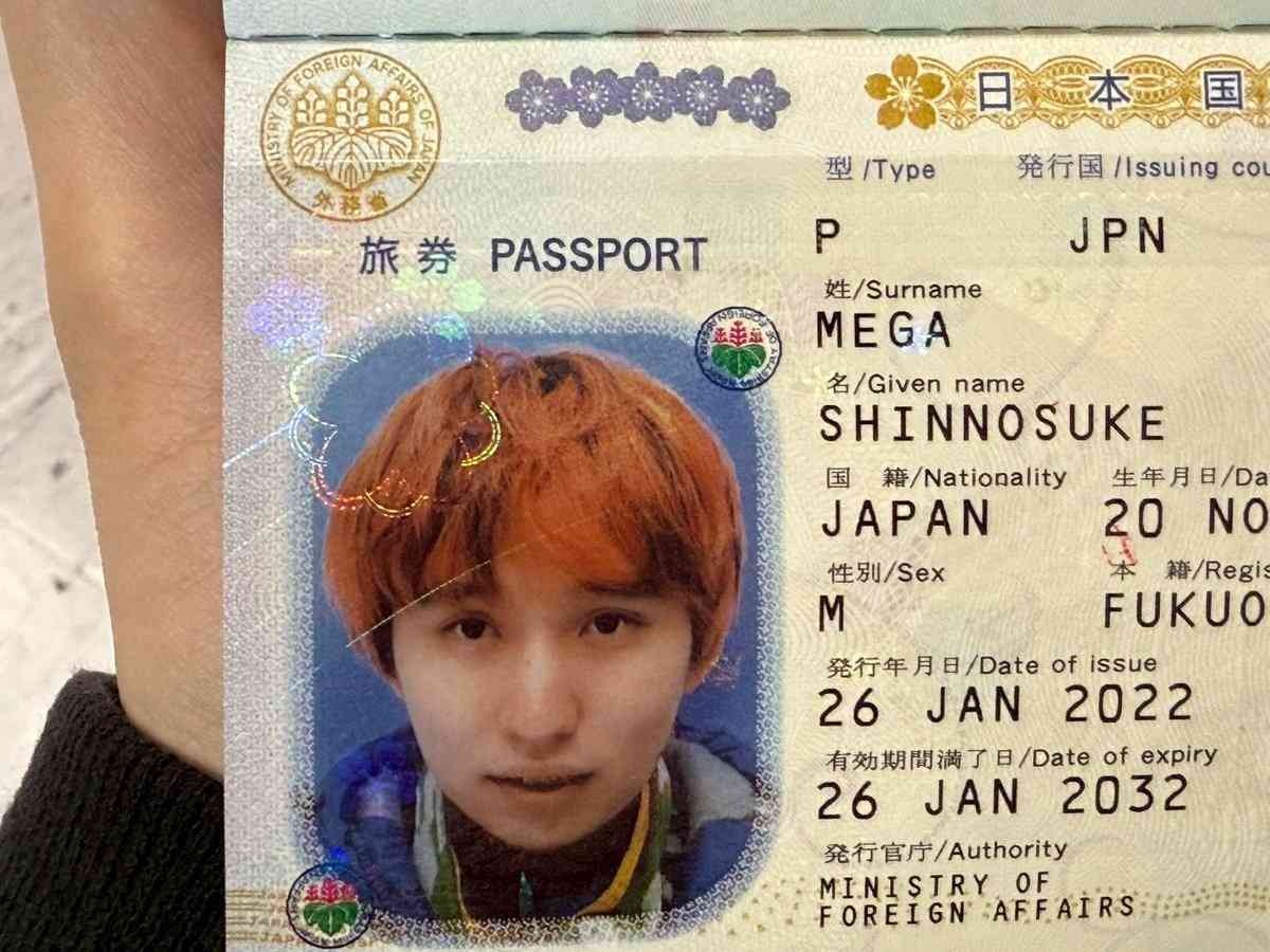 「みんな全然信じてくれてないけど めがしんのすけ本当に本名だよ」と、パスポートのIDページの写真を添えて投稿。姓名にはそれぞれ「MEGA」「SHINNOSUKE」と印字されており、芸名ではなく本名であることを説明した。