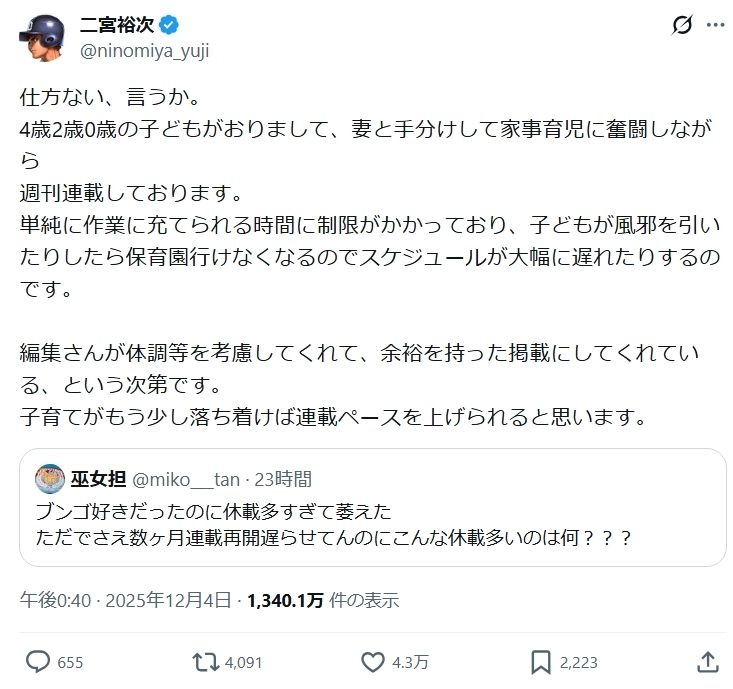 このケースはしゃーないが突発的ではなく定期的に休載するようにしてほしいわ