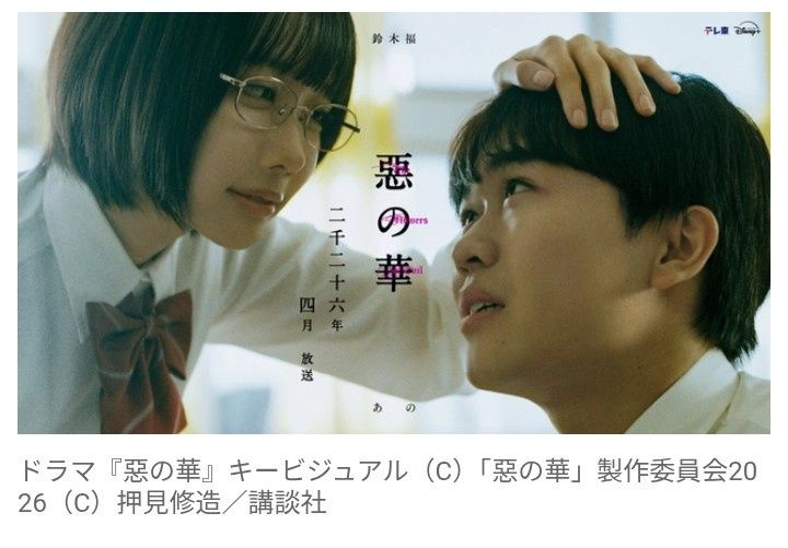 テレビ東京は2026年4月から、漫画家・押見修造氏による人気コミック『惡の華』を実写ドラマ化すると、25日に発表した。俳優の鈴木福とアーティスト・タレントのあのがW主演を務める。
