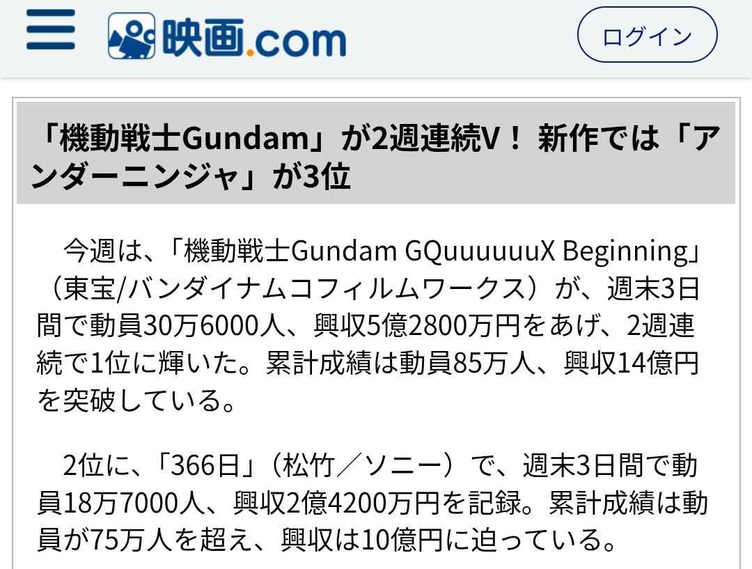 ジークアクスに負けるのはまあ仕方ないが30億未到で終わったら面白いのに