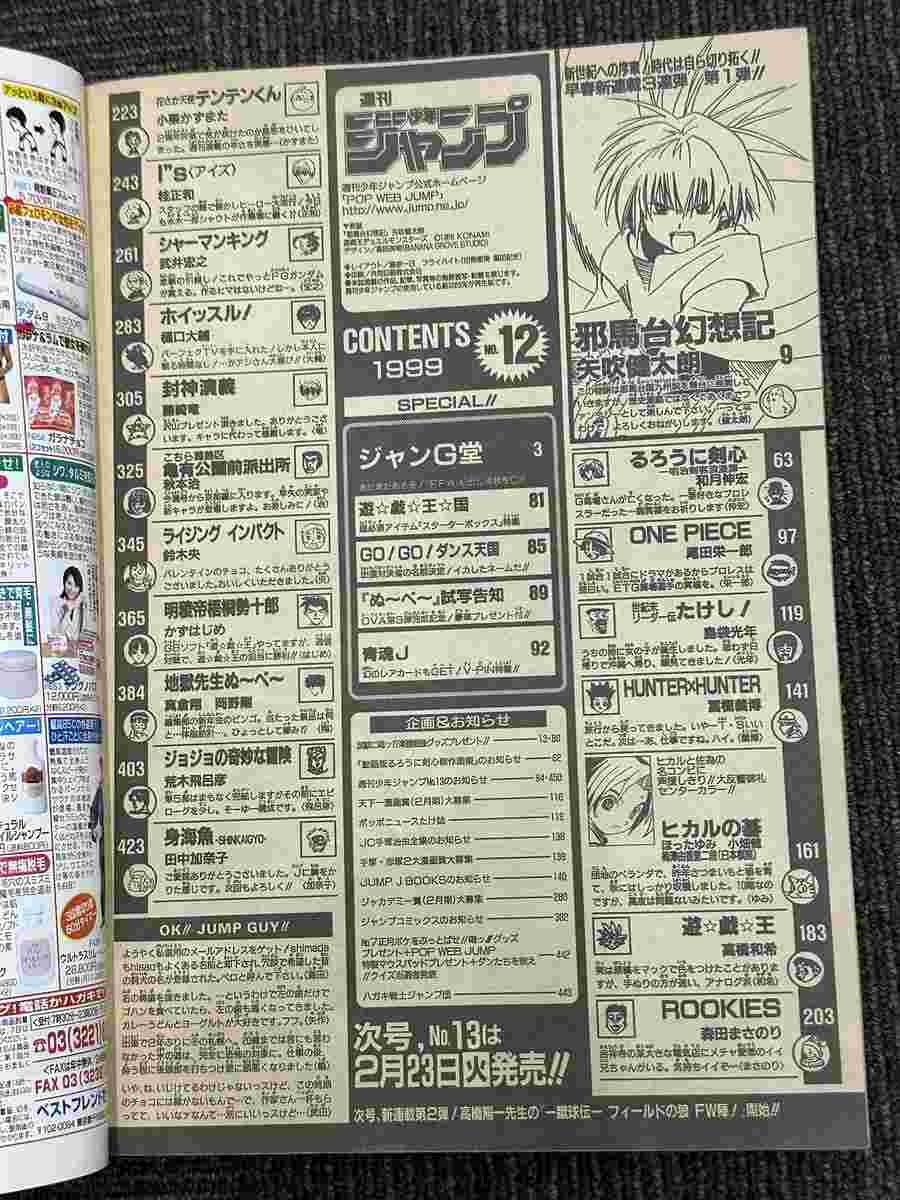 その時に連載していた作品は、『るろうに剣心』『ワンピース』『ヒカルの碁』『遊☆戯☆王』『シャーマンキング』『地獄先生ぬ~べ~』『ジョジョの奇妙な冒険』第5部『アイズ』『封神演義』『こちら葛飾区亀有公園前派出所』『花さか天使テンテンくん』『世紀末リーダー伝たけし!』など、どれも人気作品となっている。