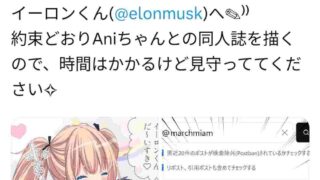VIP ひなこのーとの作者さん、シャドウバン解除のお礼に「イーロン✕Ani」同人誌をガチで描くとのこと
