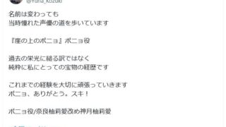 芸スポ ポニョ役子役の現在「当時憧れた声優の道を歩いています」Xで各シーンの収録秘話も明かす