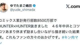 なんG キン肉マン作者「累計発行部数でHUNTER×HUNTER抜きました。休まず描いた結果です。」