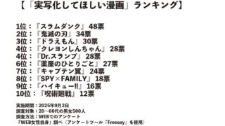 芸スポ 『アニメ化してほしいマンガランキング』今年も開催 昨年は総投票数15万票、過去には『SPY×FAMILY』『薬屋』などランクイン