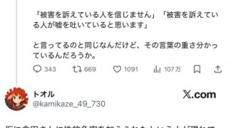 嫌儲 倉田真由美「性被害者を疑うな!加害者が100%悪い」男「あなたに性加害されました」倉田「冤罪冤罪冤罪!」