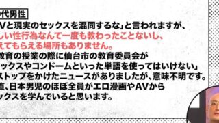 嫌儲 Q「日本の性教育でセクロスの仕方を教えないのはなんでですか? 全男子、エ口漫画とAVで学ぶしかありません」